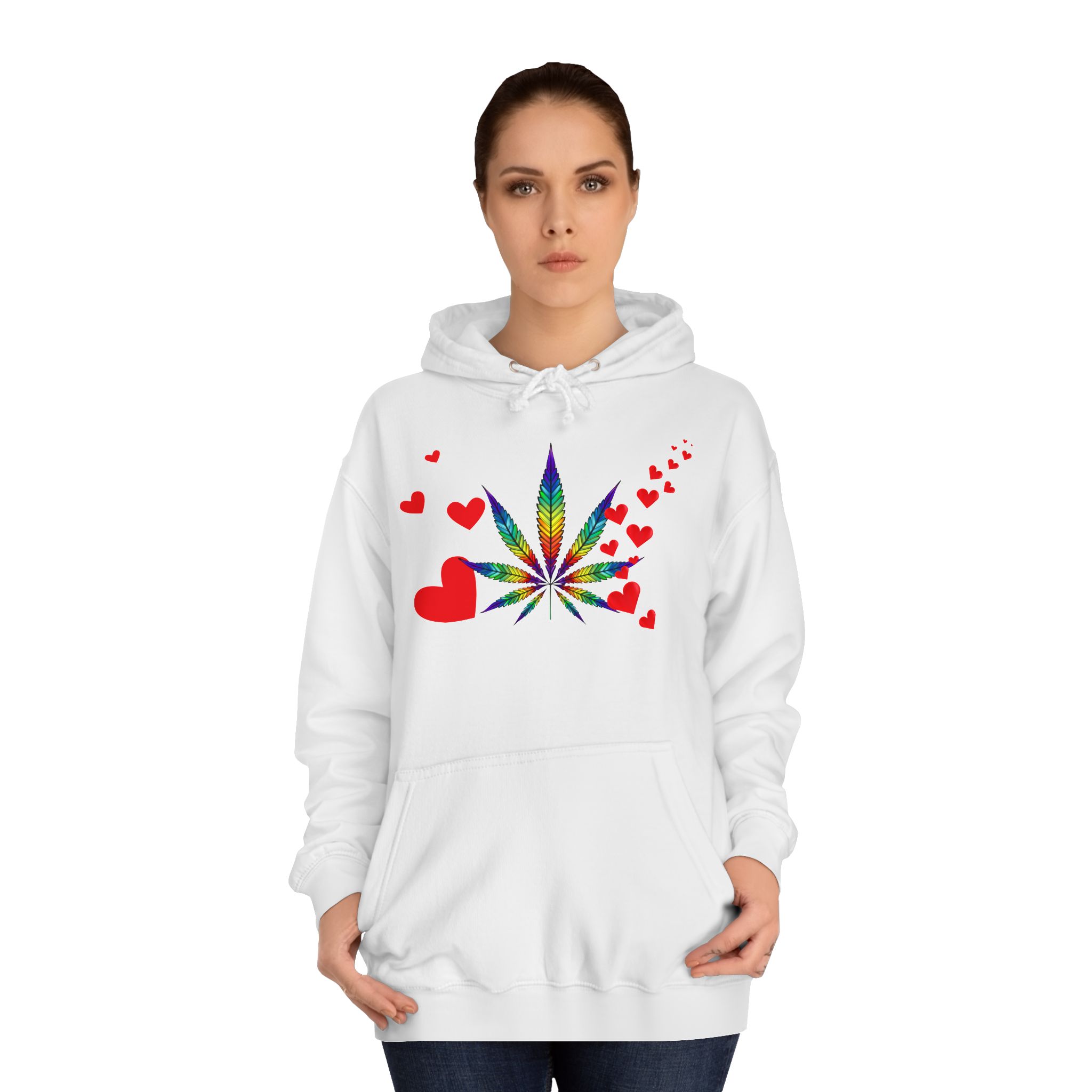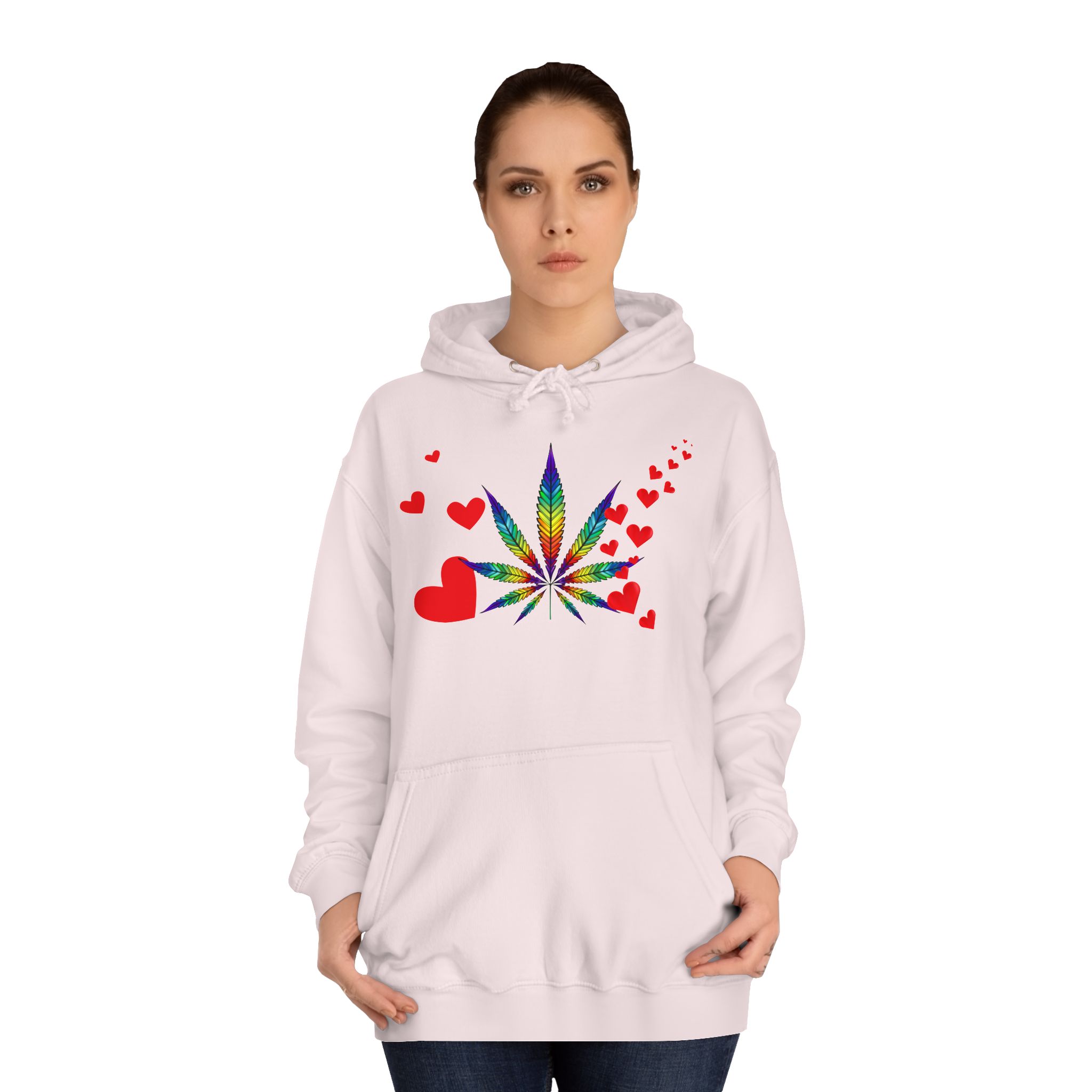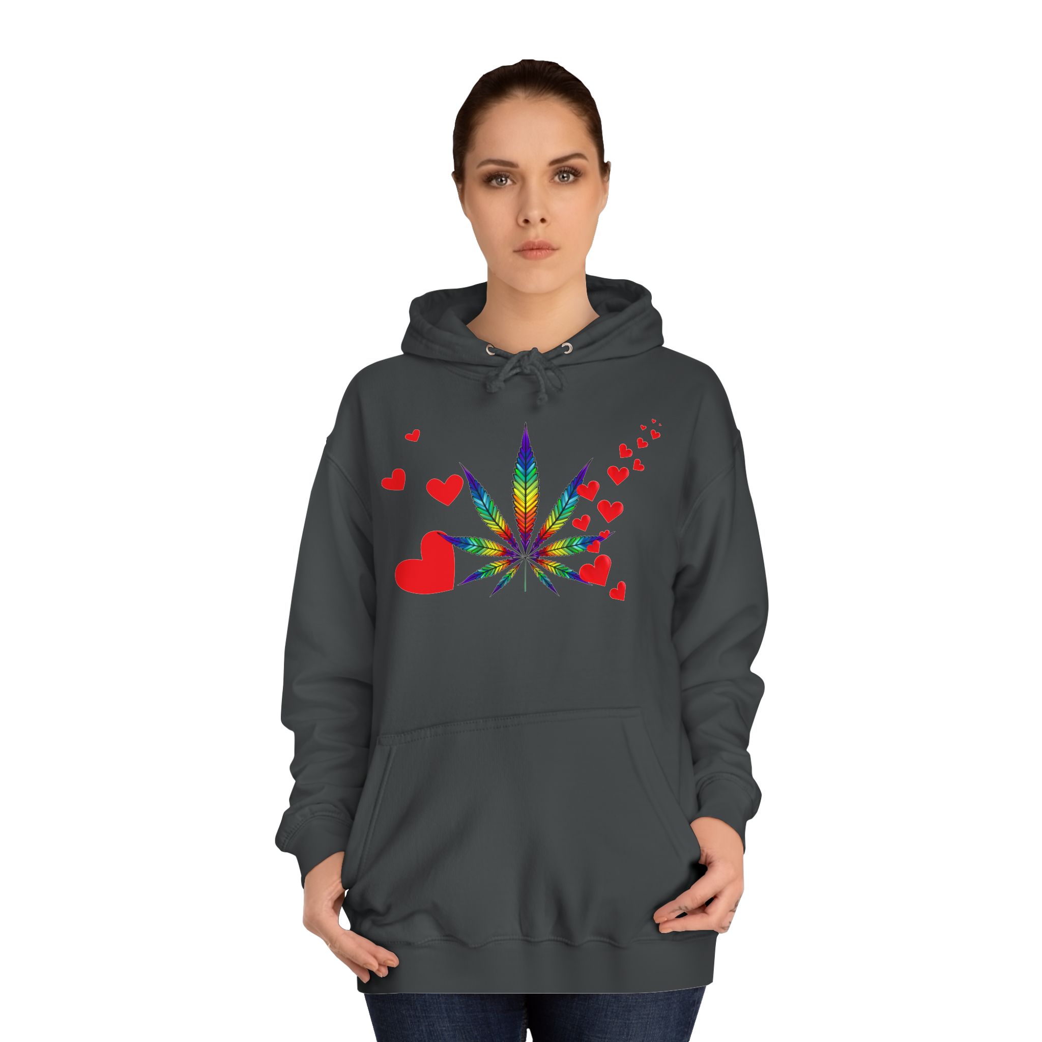 - Eye-Catching Front Design: A colorful cannabis leaf paired with vibrant hearts, perfect for spreading love and good energy.