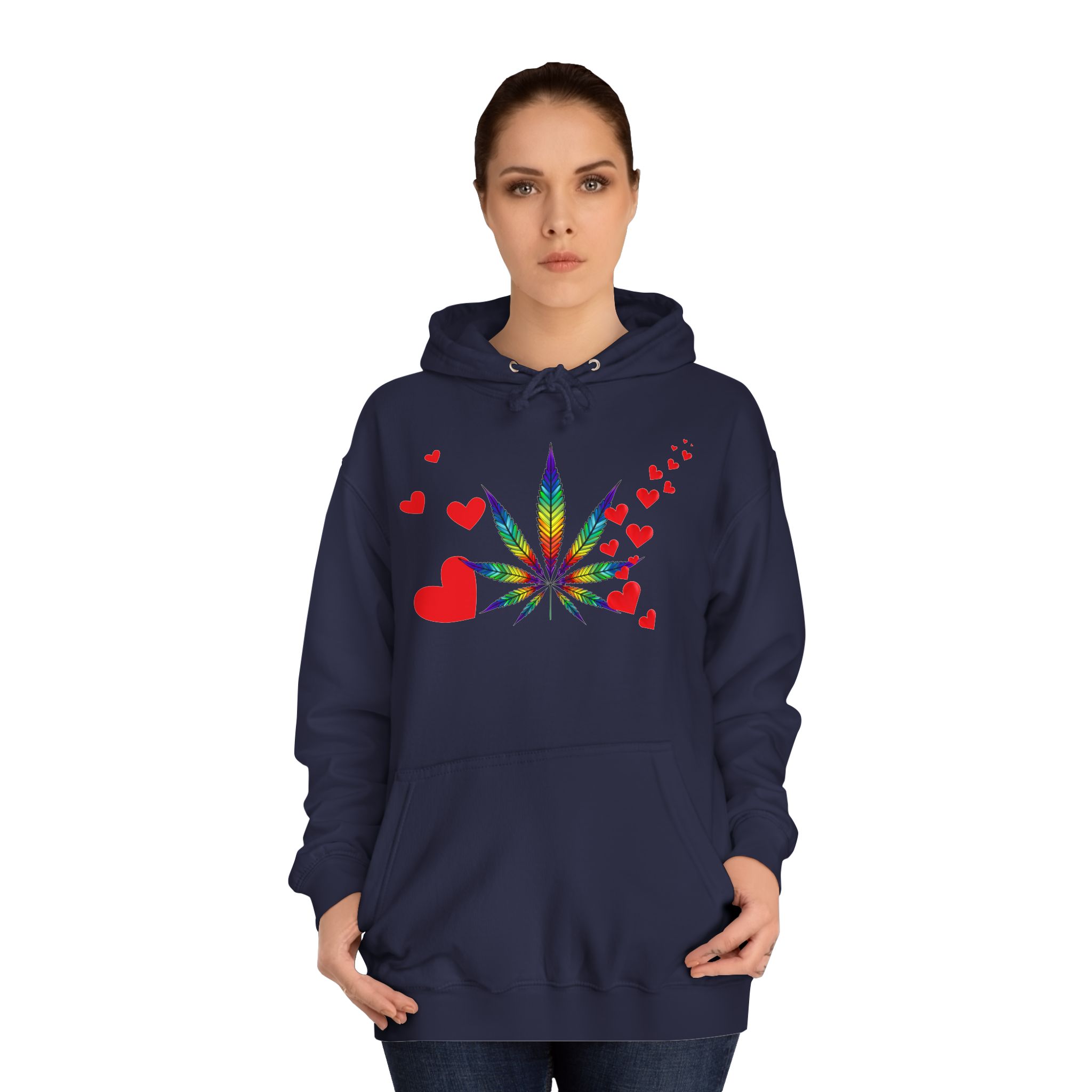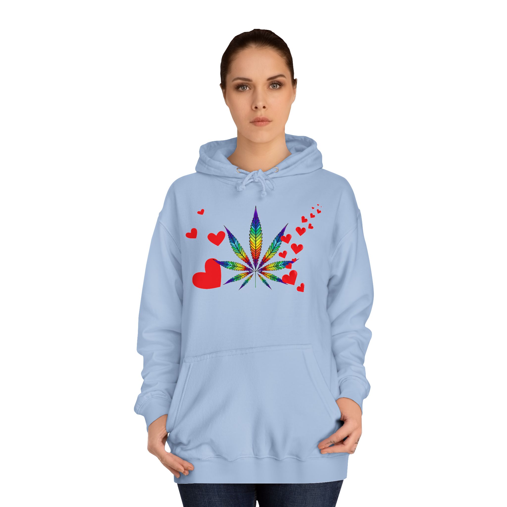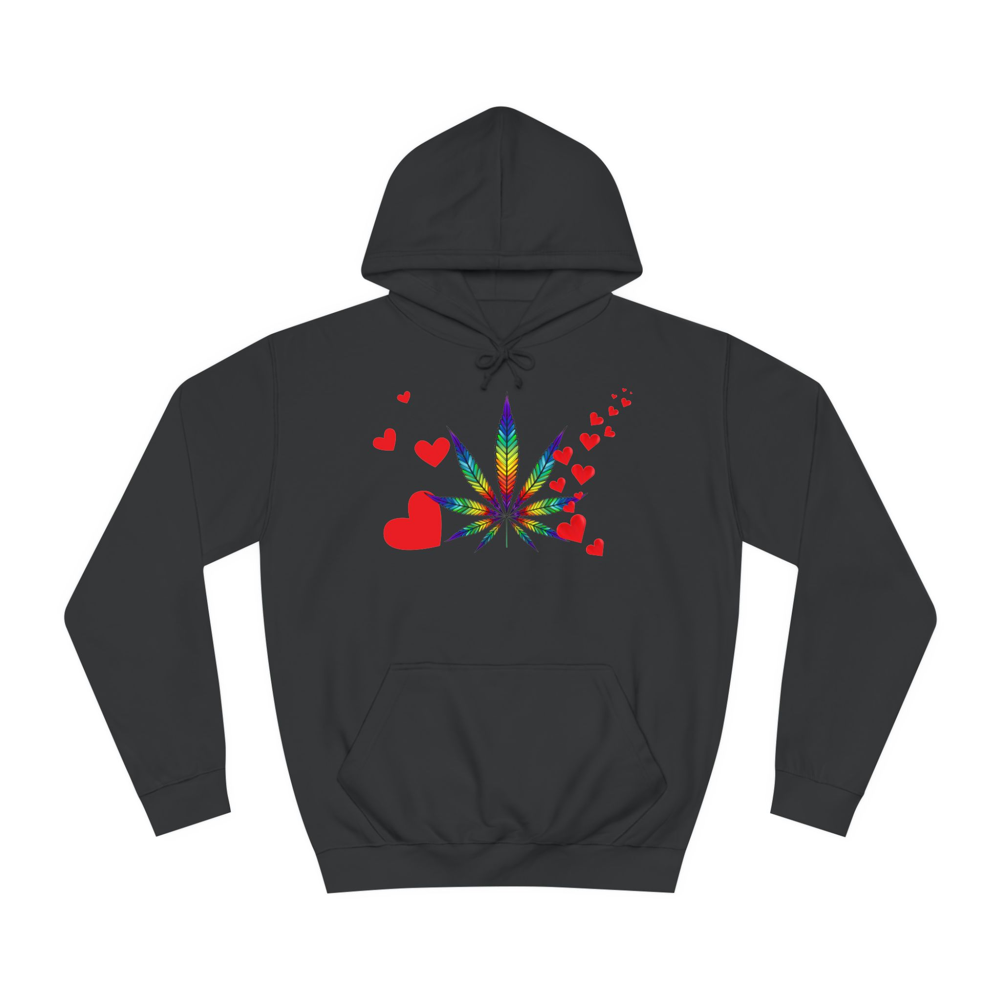 - Eye-Catching Front Design: A colorful cannabis leaf paired with vibrant hearts, perfect for spreading love and good energy.